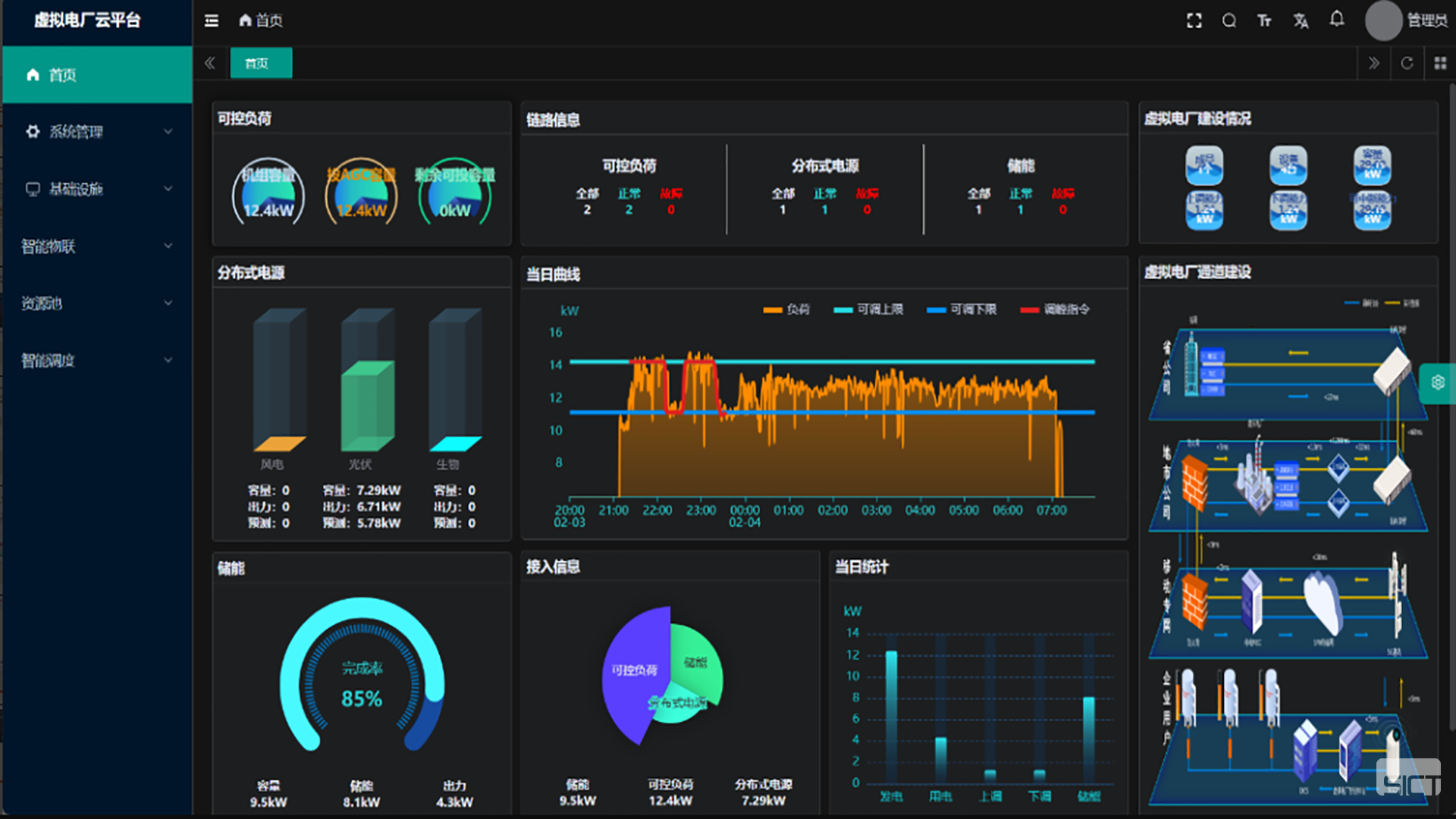 系統(tǒng)以聚合分布式光伏、儲(chǔ)能、可調(diào)負(fù)荷等資源為核心,破解新能源調(diào)控難、分布式資源管理低效等痛點(diǎn)。虛擬電廠通過聚合分布式電源、儲(chǔ)能及負(fù)荷資源,實(shí)現(xiàn)靈活調(diào)度與電力市場交易,提升新能源消納和電網(wǎng)韌性;微電網(wǎng)能量管理系統(tǒng)整合風(fēng)光儲(chǔ)等多能互補(bǔ),優(yōu)化能源效率,保障可靠供電,推動(dòng)企業(yè)能源數(shù)字化升級(jí)。兩者協(xié)同助力新型電力系統(tǒng)構(gòu)建,加速“雙碳”進(jìn)程。